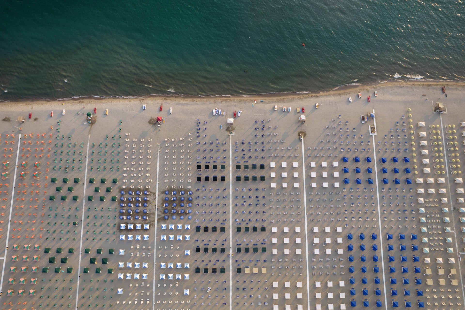 Der Strand von Viareggio erstreckt sich über rund acht Kilometer entlang der toskanischen Küste und bietet einen der breitesten und schönsten Strandabschnitte der Versilia. Dieser lange Streifen aus feinem, goldenem Sand verläuft von der Grenze zu Torre del Lago bis zum Lido di Camaiore und durchquert die gesamte Stadt. An seinen breitesten Stellen misst er zwischen 40 und 100 Metern. Dank seiner privilegierten Lage am Tyrrhenischen Meer bietet er kristallklares Wasser und flache, sandige Meeresböden – ideal für Familien und weniger geübte Schwimmer.